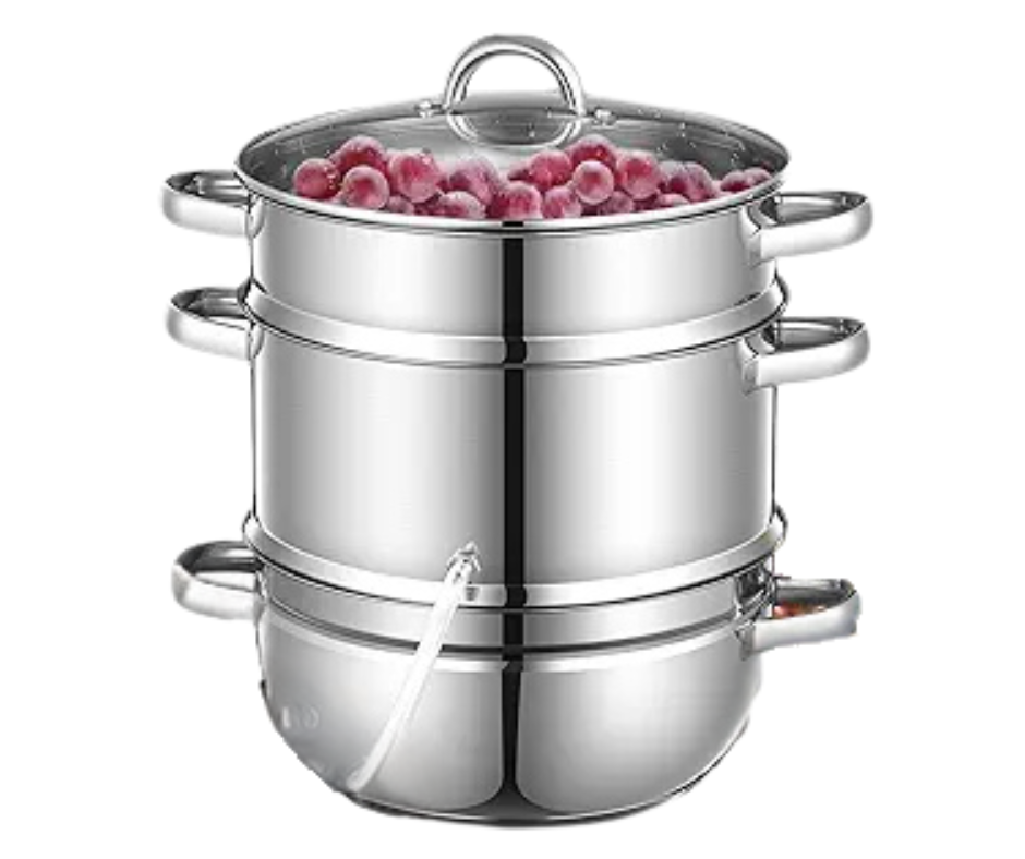 This extracts juice using steam rather than cold pressing. It is fast and efficient for processing large fruit harvests.