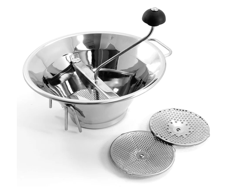This hand-crank tool is 100% worth it if you are getting into food preservation. It mechanically removes skins and seeds from fruits and vegetables like tomatoes and apples, making sauces and purees incredibly smooth. Mine is an Italian-made one by the brand OMAC. I bought it years ago at Walmart, and even though the handle has fallen off, it still works perfectly!