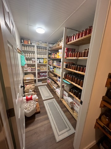 - Canned Goods: We pulled jars of spiced peaches, strawberries, zucchini relish, and tomato sauce. We will use the tomato sauce as a base for homemade tomato soup.